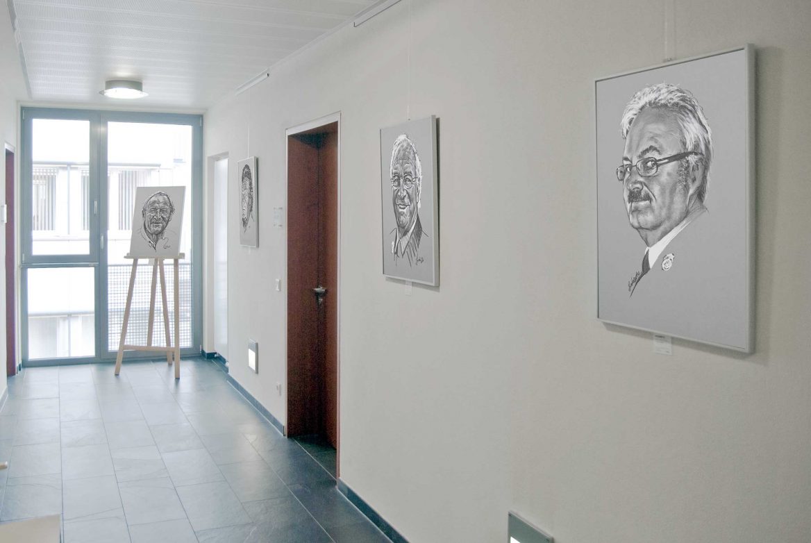 Mit dieser Einzelausstellung habe ich mich künstlerisch Personen aus meinem persönlichen Umfeld gewidmet. Entstanden sind 42 Porträts in Aquarell, Pastell sowie als Kohle- und Bleistiftzeichnungen. Allerdings hatten die Porträtierten keine Ahnung, dass sie bald als Kunstwerke im Rathaus Taufkirchen (Vils) hängen würden. Denn die Werke waren nicht wie üblicherweise Aufträge, sondern die Vorlagen hatte ich aus meinem fotografischen Bestand entnommen. Schnappschüsse, die ich in den letzten beiden Jahren bei Veranstaltungen oder im Vorübergehen geschossen hatte und die ursprünglich gar nicht für eine künstlerische Verwendung vorgesehen waren.